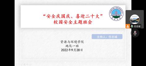 (通讯员 周繁艳 文/图)国庆佳节在即,为了提高员工的假期安全意识,2022年9月28日晚上20:00,太阳集团tcy8722研究生地化一班线上进行了“安全庆国庆,喜迎二十大”的校园安全主题班会。